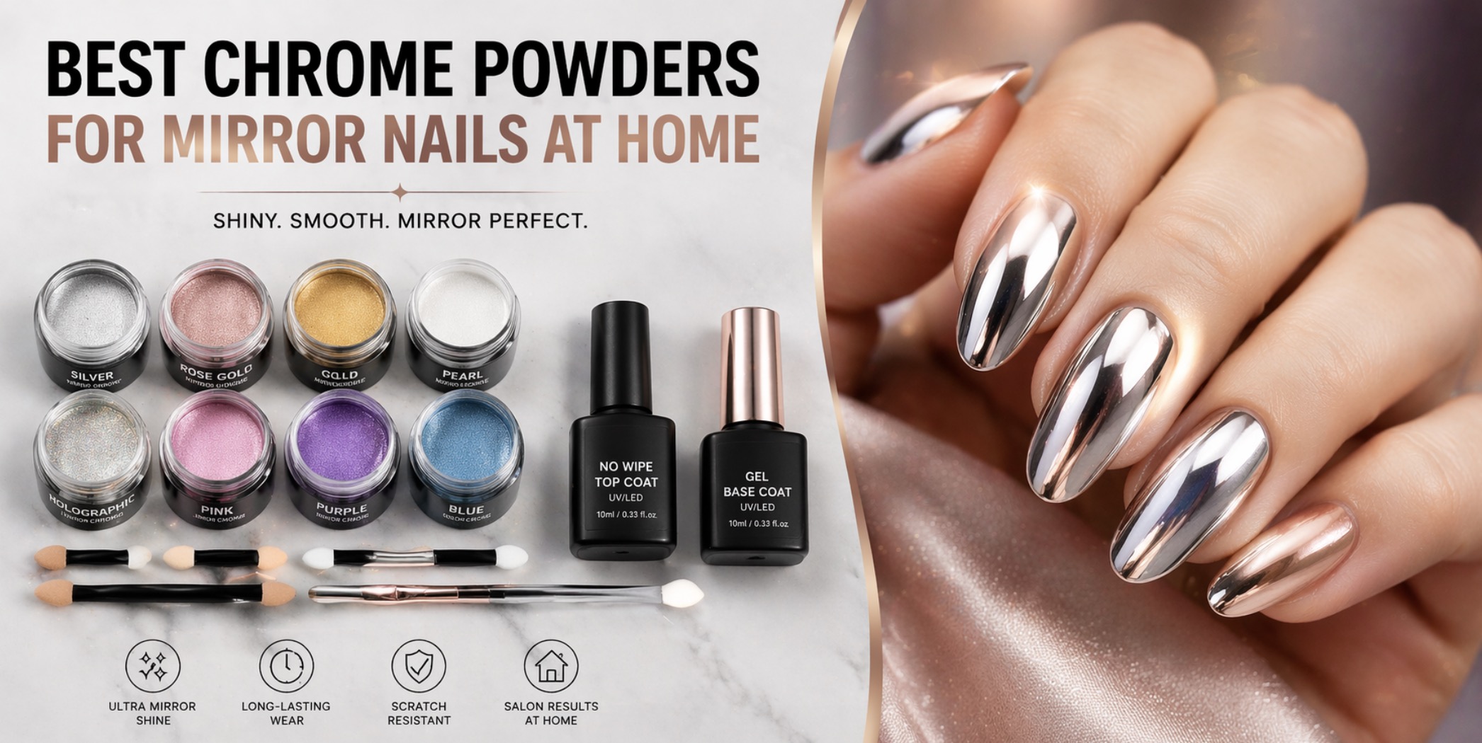 This guide is here to make the whole thing less chaotic. We’re going to talk about what makes a chrome powder actually good, what beginners should look for, what tools help the most, how to get that true mirror effect, common mistakes to avoid, and how to choose powders that give you those sleek, salon-looking nails without turning your manicure into a glittery little meltdown.