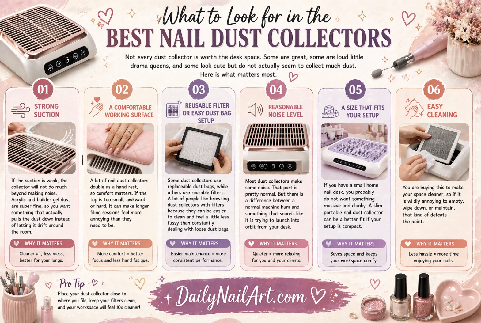 You want a collector that supports your nail routine, not one that takes over your entire desk like an unwanted roommate.