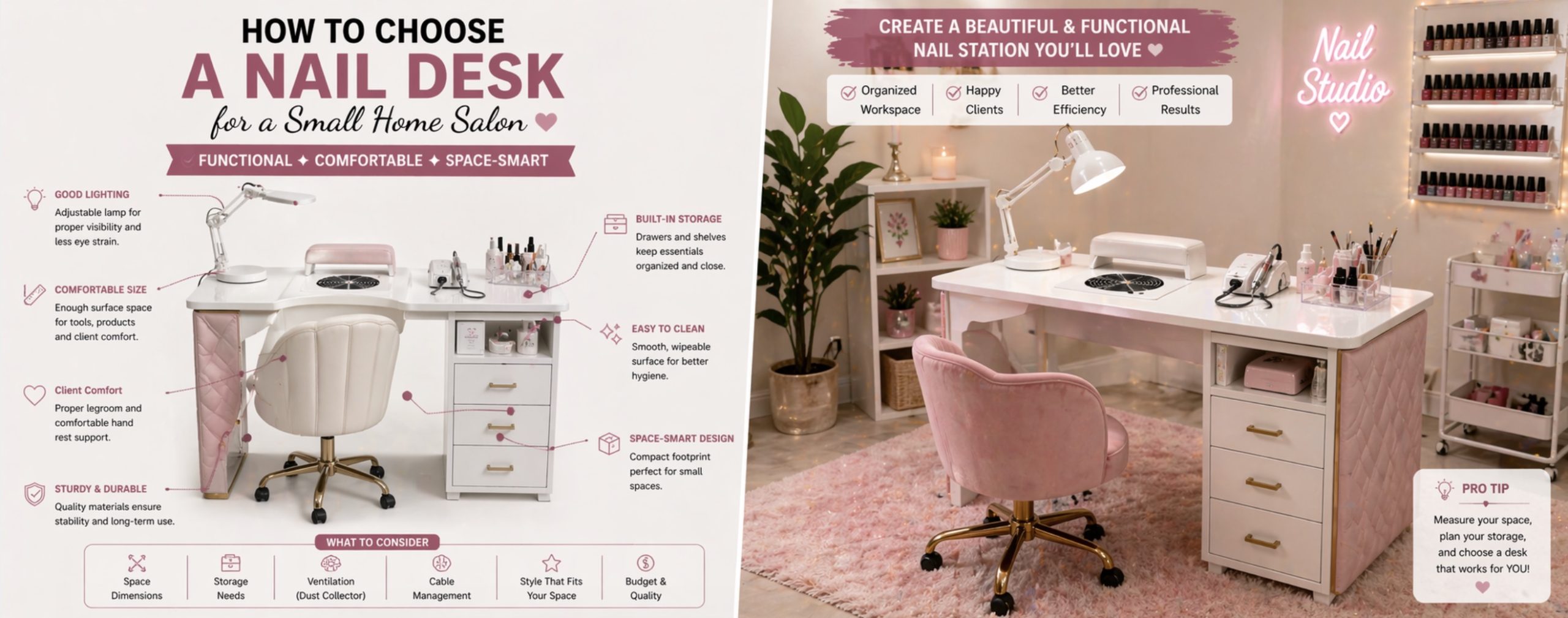 Learning how to choose a nail desk for a small home salon really comes down to balancing space, function, and comfort. You want something that fits your room, supports the way you work, and keeps your little nail area feeling calm instead of crowded.