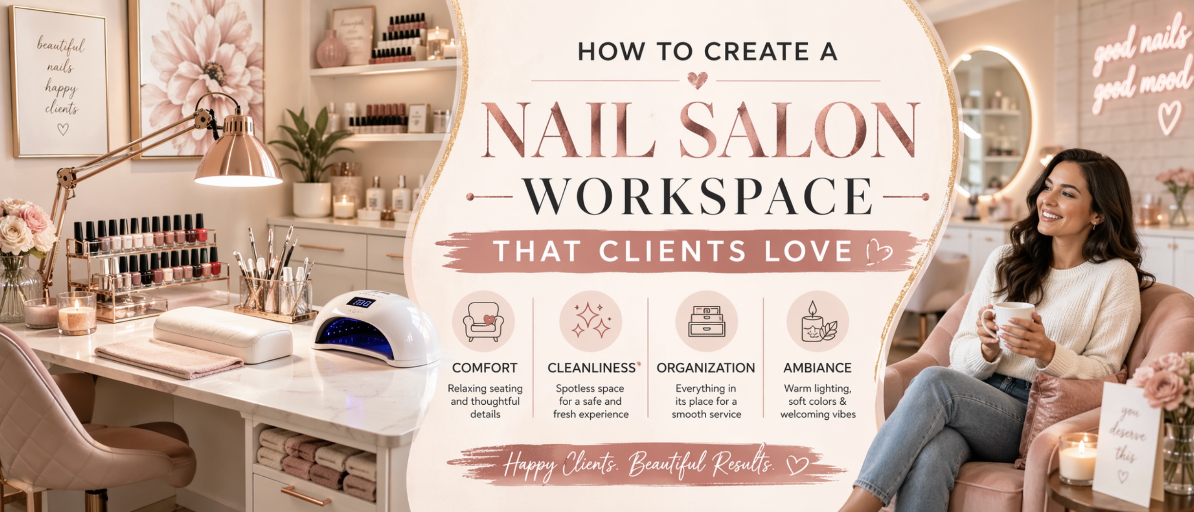 Because honestly, there is something very satisfying about watching a client sit down, look around your nail space, and instantly feel like they are in the right place for a cute, polished, feel-good manicure.