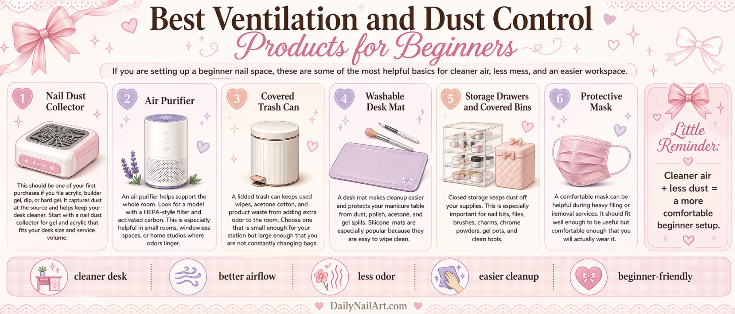 If you are setting up a home nail studio or small salon, ventilation and dust control can feel confusing at first. Do you need a dust collector? An air purifier? A window fan? A fancy salon ventilation system? Don’t worry, babe. This beginner-friendly guide will walk you through what matters, what products are worth considering, and how to create a healthier nail workspace without making your studio feel like a science lab.